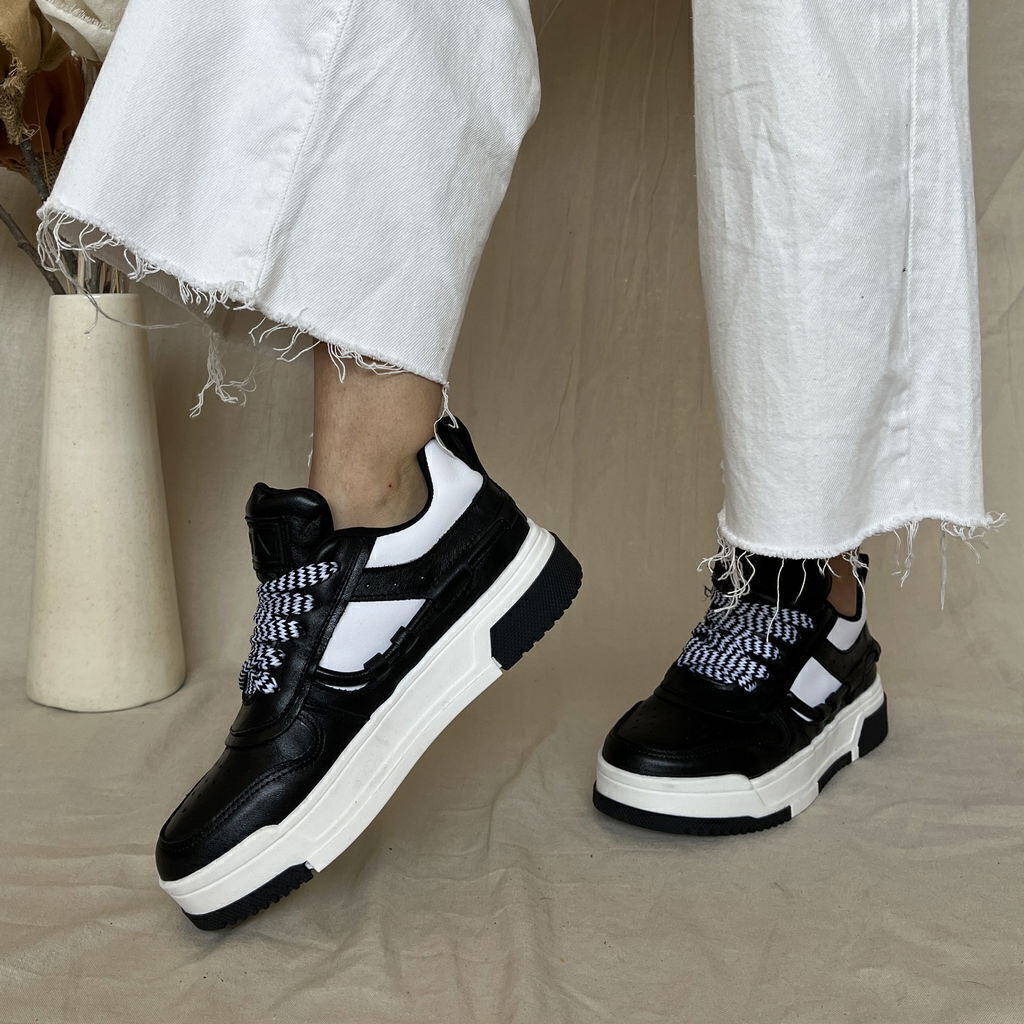 Cerramiento: cordones de algodón combinados blanco y negro.