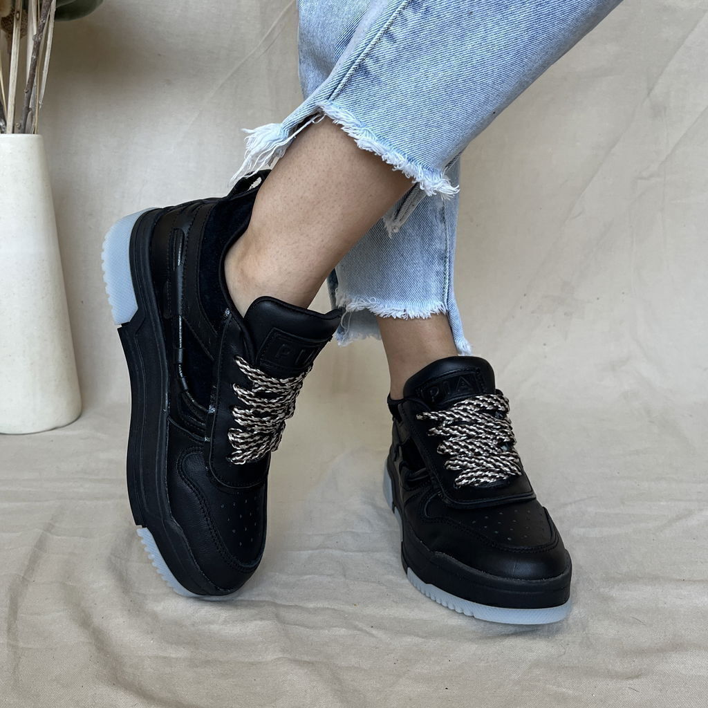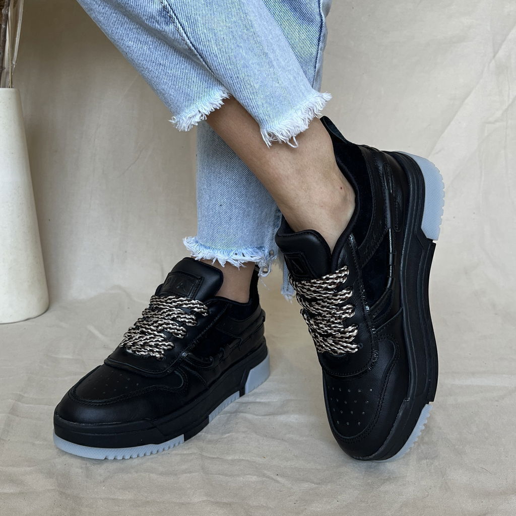 Zapatillas de cuero vacuno color negro.