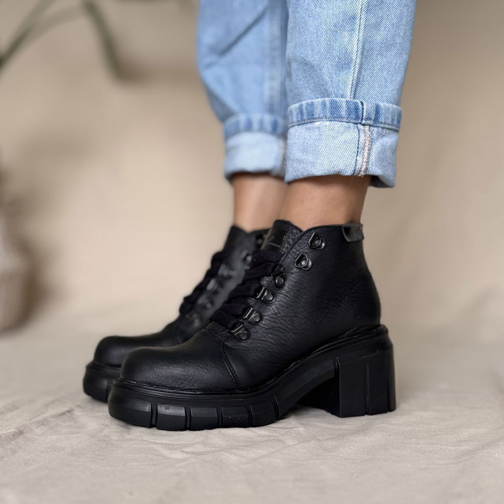 Borcego con taco caña baja de cuero vacuno liso negro