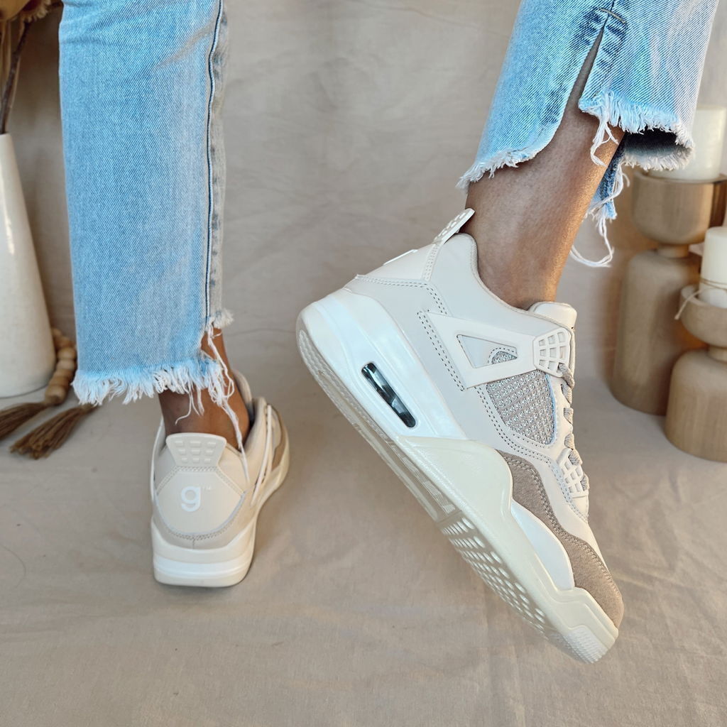 Material: material sintético color beige combinada con gamuza en puntera y apliques de goma a tono