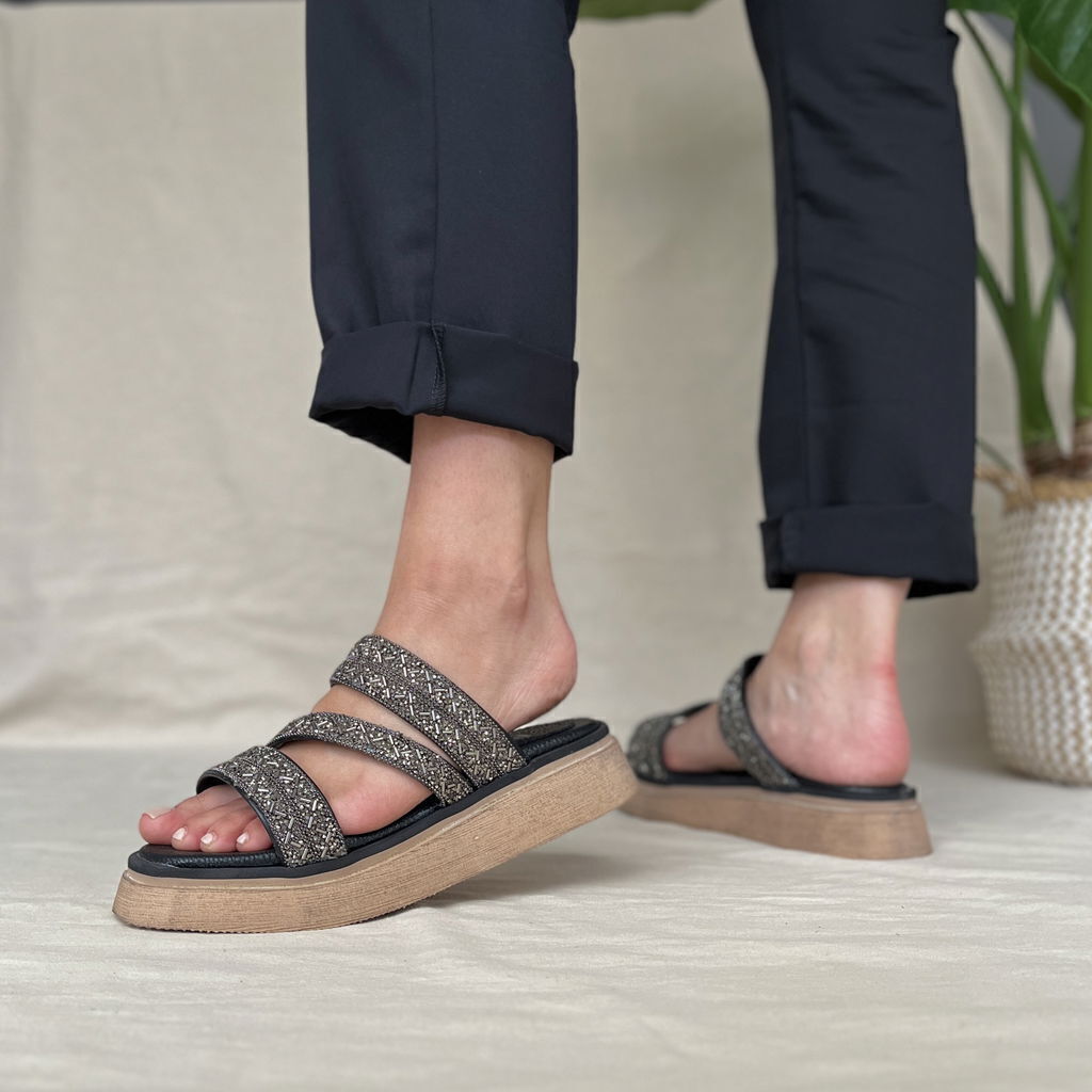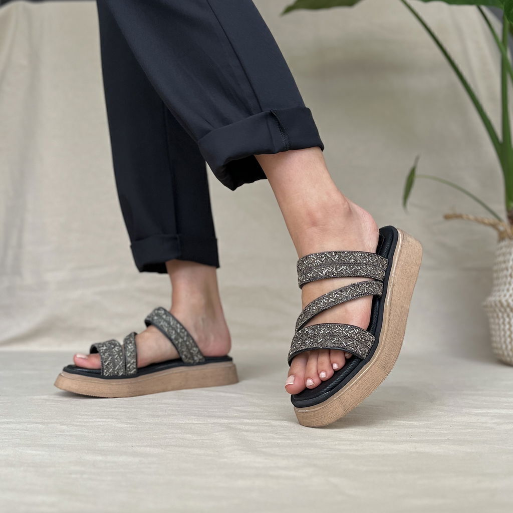 #BUCCOTIPS: Sandalias bajas, muy livianas y cómodas, confeccionadas en cuero negro con una capellada adornada con piedras brillantes que aportan un toque de elegancia. Su versatilidad te permitirá lucir fabulosa en cualquier ocasión. ¡Perfectas para complementar tus looks!