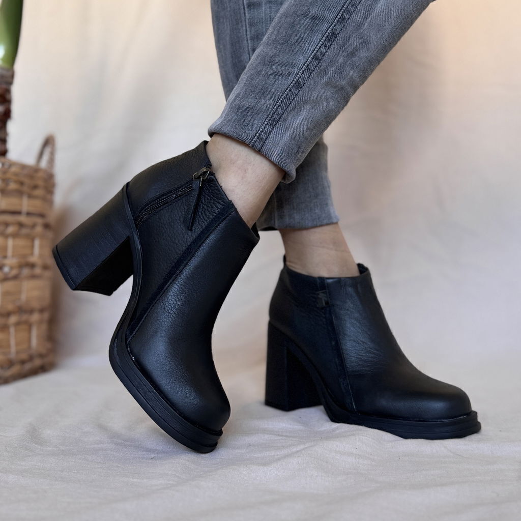Bota de cuero vacuno taco alto color negro.