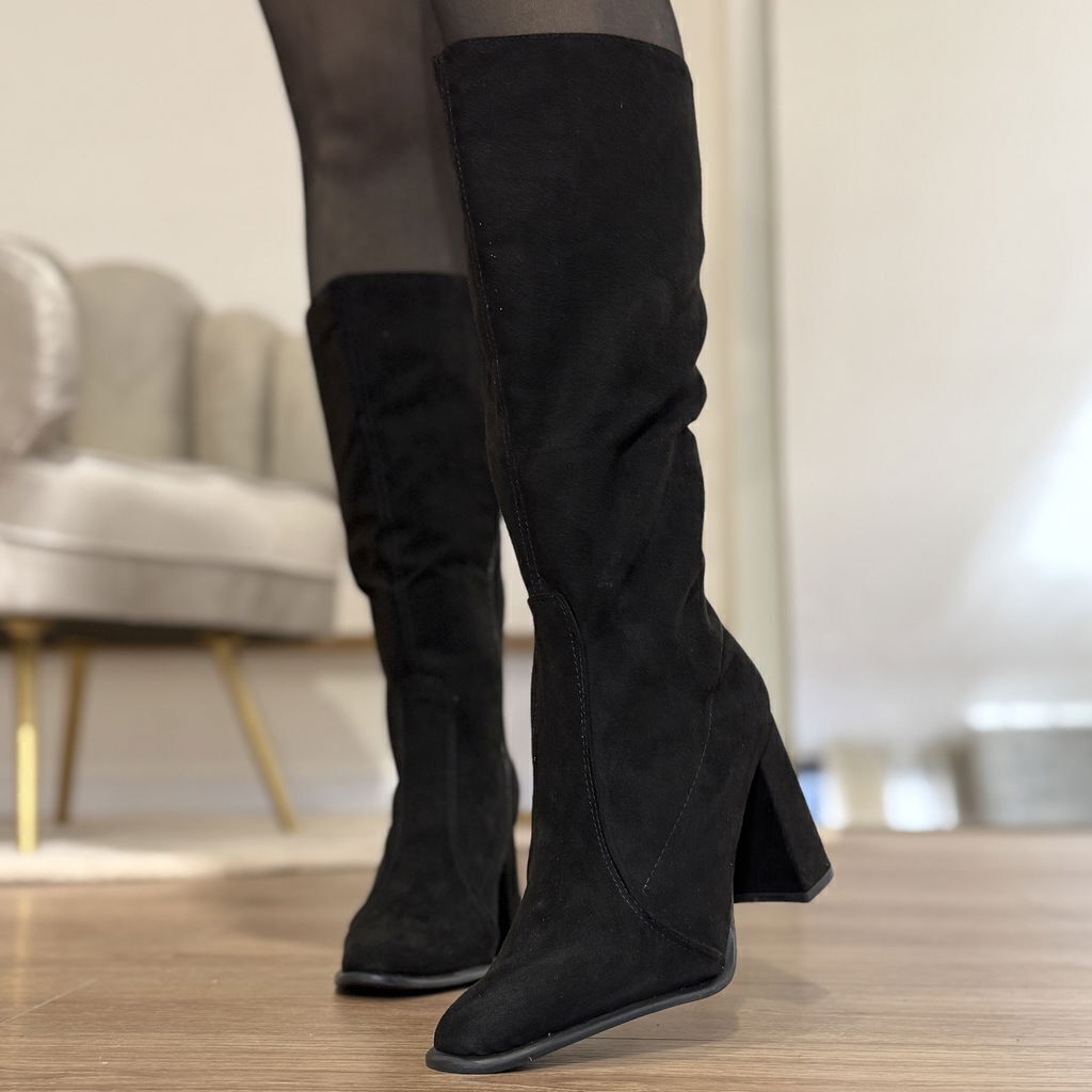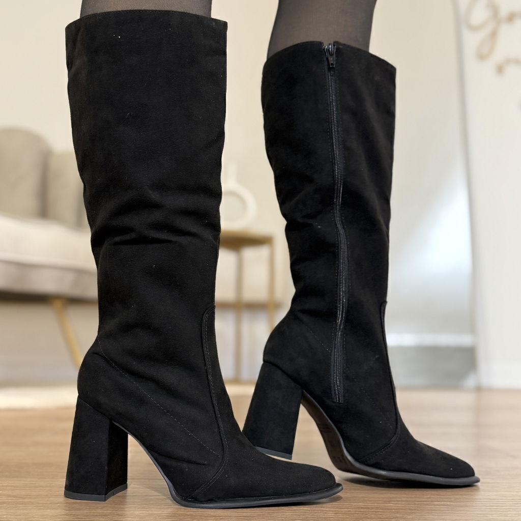 Bota caña alta de material sintético gamuzado de alta calidad color negro