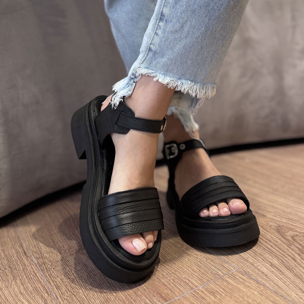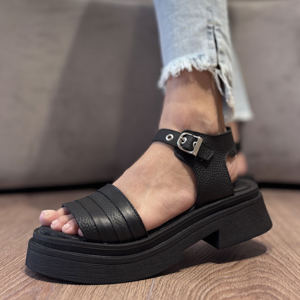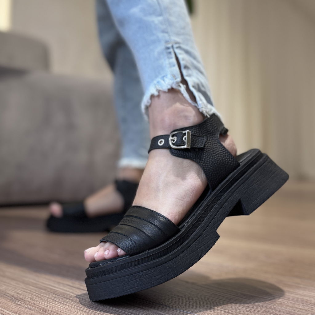 Sandalias de cuero vacuno graneado color negro