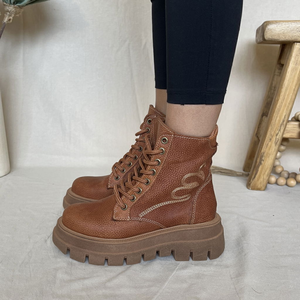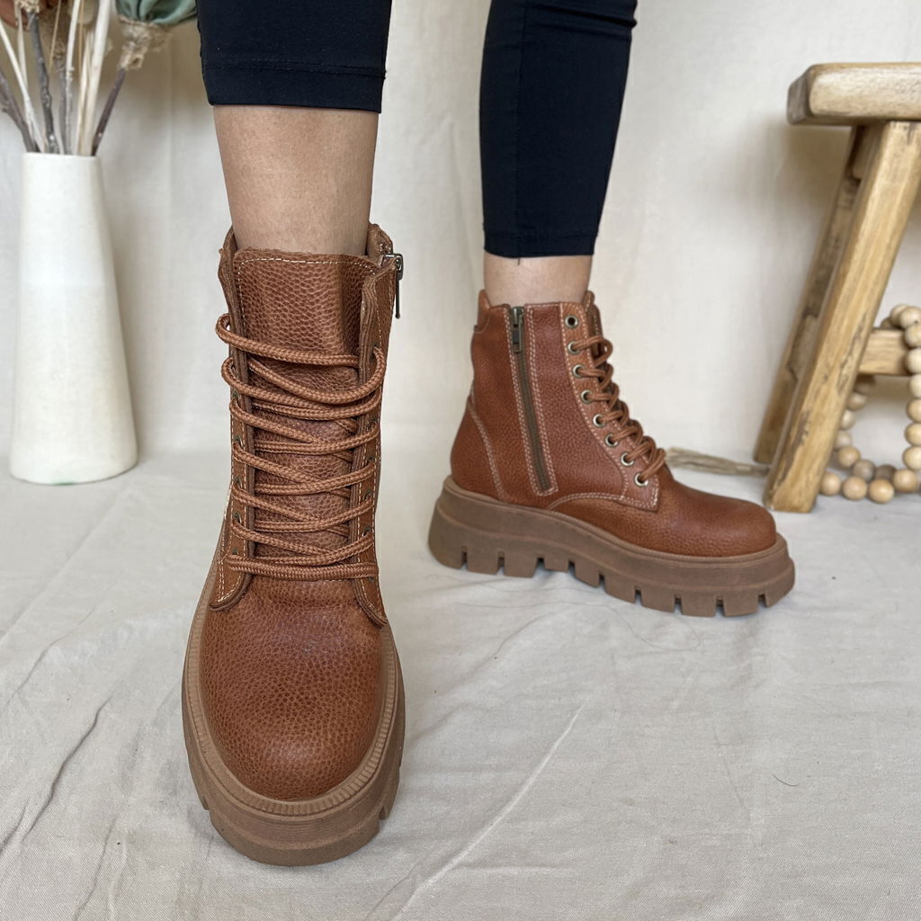 Cerramiento: cordones de algodón color camel y cierre interno color bronce