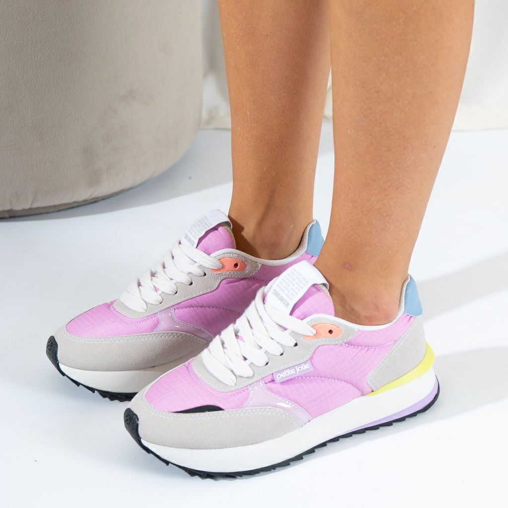 Zapatillas urbanas combinada de material textil color rosa y gamuza color gris