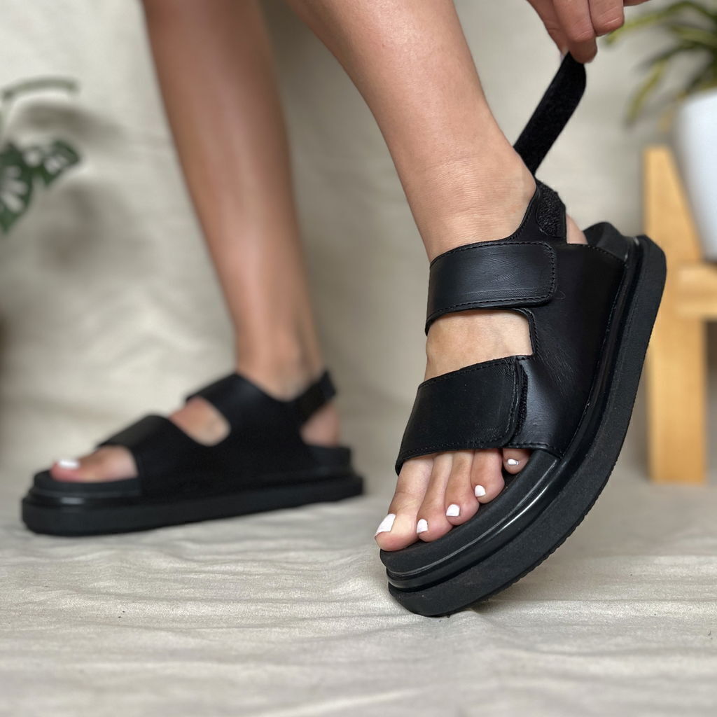 Sandalia de cuero color negro.
