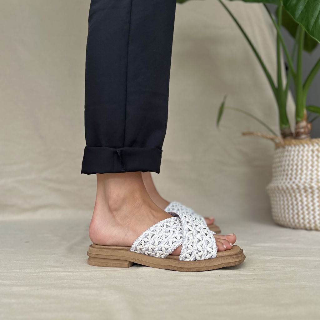 #BUCCOTIPS: Estas sandalias chatitas, con capellada tejida en tonos beige y crudo, son el complemento perfecto para tus looks de verano. La hebilla forrada en cuero ecológico en color beige añade un toque de sofisticación y comodidad. ¡Perfectas para disfrutar del sol con estilo!