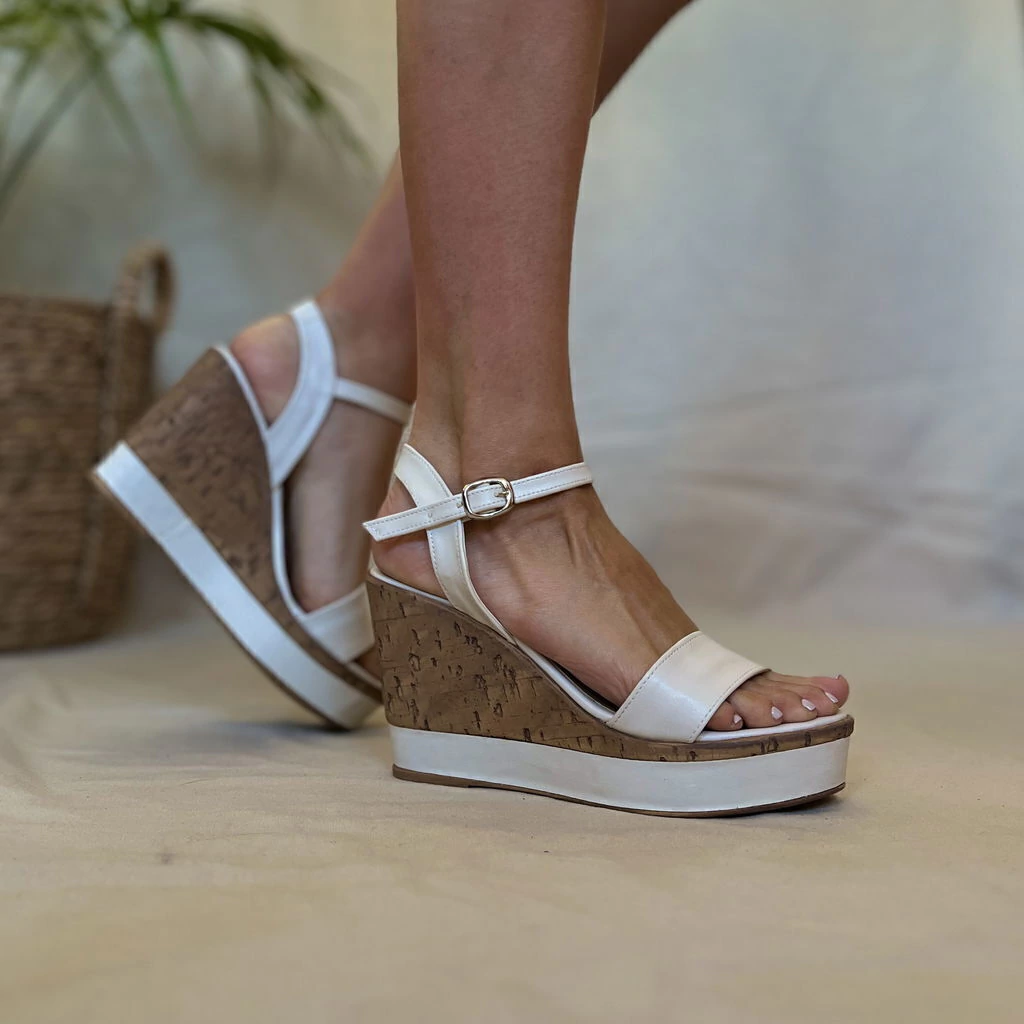 Sandalia taco chino blancas.