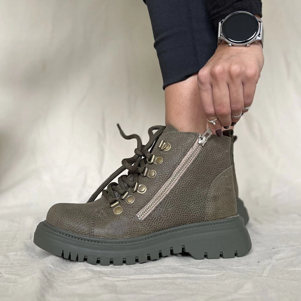 Borcego cuero vacuno graneado color verde.